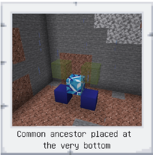 - Both students dig out their cliffs and place ‘fossils’ inside, starting with a common ancestor fossil at the very bottom of the cliff. The fossils they build should just be groups of blocks of a predetermined color that students know not to break when digging.
