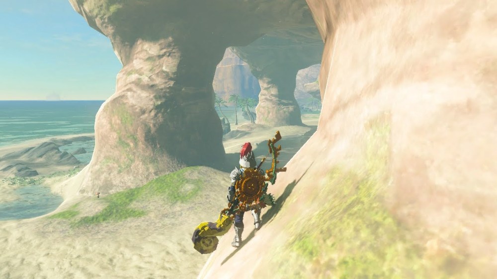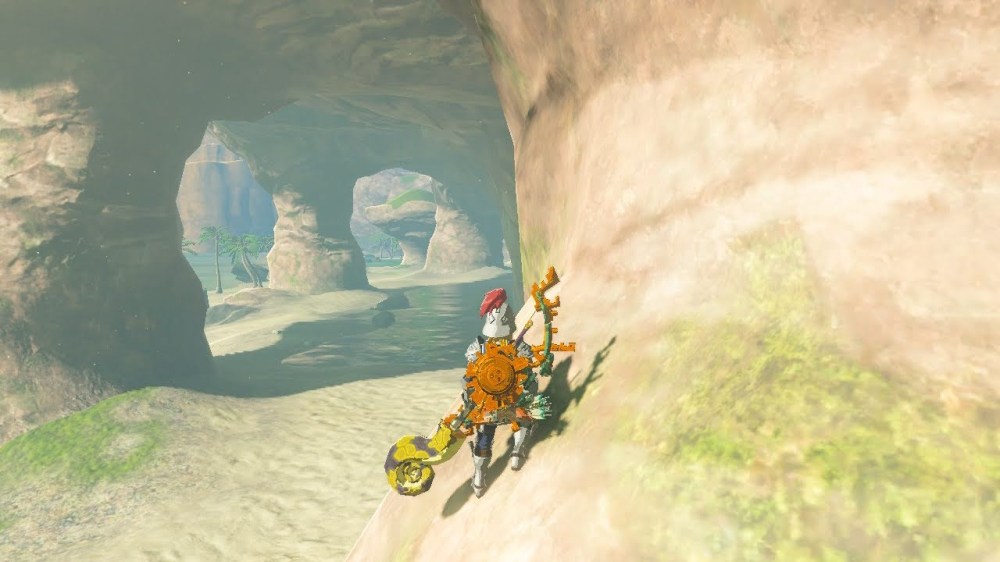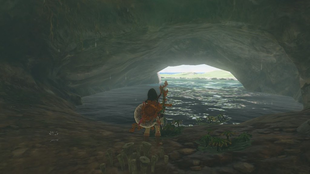 Sea Caves like this one form when water seeps into crevices in the rock from above. The limestone rock found throughout Cape Cales is especially susceptible to chemical weathering from water. The water weakened the rock from within and opened caves within the rock formation. Over time, energy from outside tides was refracted (bent) towards the already weakened limestone and created an opening into the already-formed cave. This particular cave was excavated deeper by ancient peoples as evidenced by the zonai devices found within as well as the unnatural tunnel paths inside the cave.