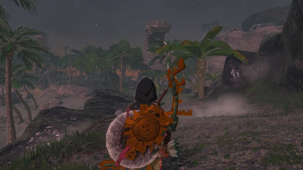 Storms are common and sometimes fierce on Eventide Island (ironically, given its name ‘Eventide’). Its position out at sea in front of Cape Cales is what makes it an effective shield for Palmorae beach. Though the tall cliff on Eventide Island shields a portion of the island from the major elements, the flora on this island still get battered by highspeed winds occasionally. This can encourage bigger hardier plants as the roots and plant matter will adapt and grow longer and thicker to withstand the elements. Thus the palm trees on the island are actually much bigger than the ones on Palmorae beach. This island enjoys lots of precipitation annually as well as a good climate for the growth and development of many tropical plant and animal species. Got a hankering for some Mighty Bananas or Mighty Thistle? Thankfully they are abundant on this tropical island.