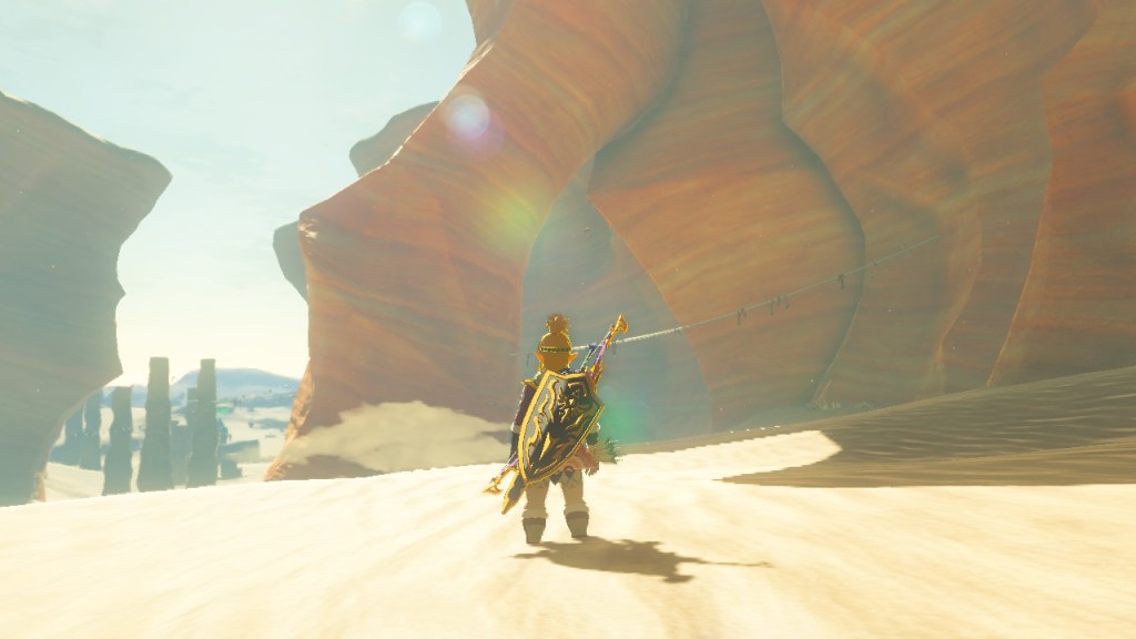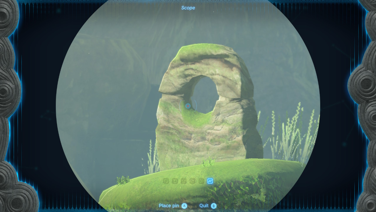 Puffer Beach, adjacent to the Faron Sea. In the image above, use the circle in the middle to compare the two images. The image on the left are arches found on Puffer Beach while the image on the right are stone rings found on the West Hyrule Plains. Which processes do these two features have in common? Which processes are different?